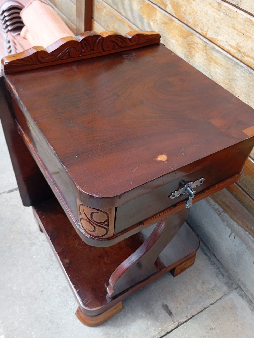 Bufê aparador Provençal, madeira de lei maciça, com 5 gavetas na parte central, 4 portas com 2 prateleiras, lindo detalhes entalhados no frontão, peça muito bem cuidada, feita pela Renomada fábrica de móvel São Jorge, Rosatto Massetti & Cia.